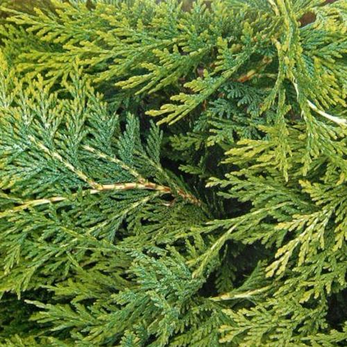 Основной окрас хвои варьируется от нежно-зеленого до голубовато-зеленого, а золотистые и кремовые кончики побегов добавляют особое очарование. Это делает Кипарисовик Элвуди Эмпайр отличным выбором для создания живых изгородей и формирования конусообразных линий в саду.