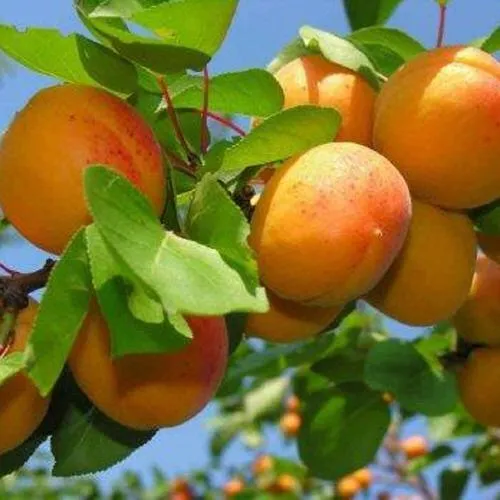 - Округлой, с выделяющимся средним швом, формы, оранжевого, с точечным красным покровом, цвета, покрыты лёгким опушением. Мякоть сочная, жёлтого цвета. Косточка умеренного размера, округлой или немного овальной формы, хорошо извлекается;
