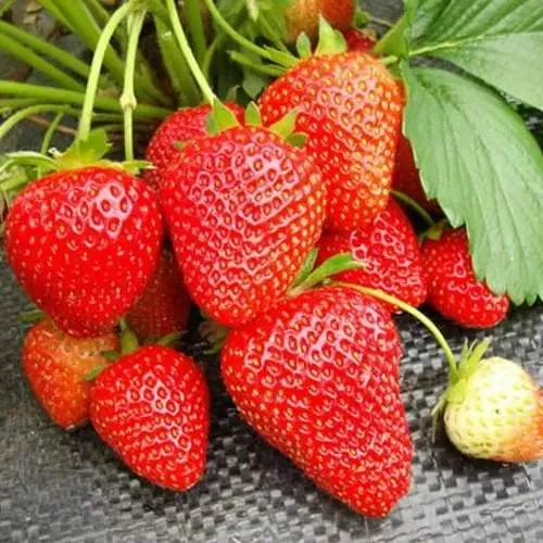 Ягоды очень крупные, их размер достигает 45 грамм, а форма – конусовидная. Они имеют ярко-красный цвет с глянцем и сладкий земляничный вкус. Мякоть ягоды очень сочная, их аромат также не оставит вас равнодушными. Дегустационная оценка этого сорта составляет 4,8 балла.